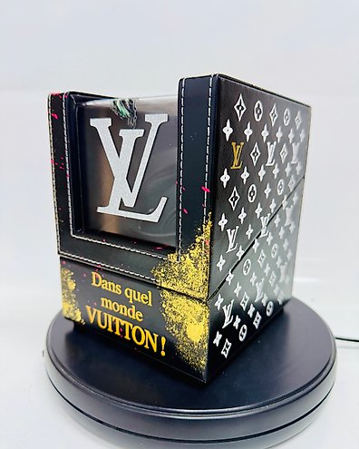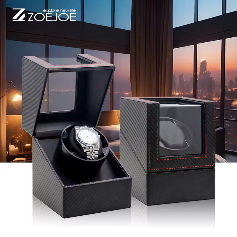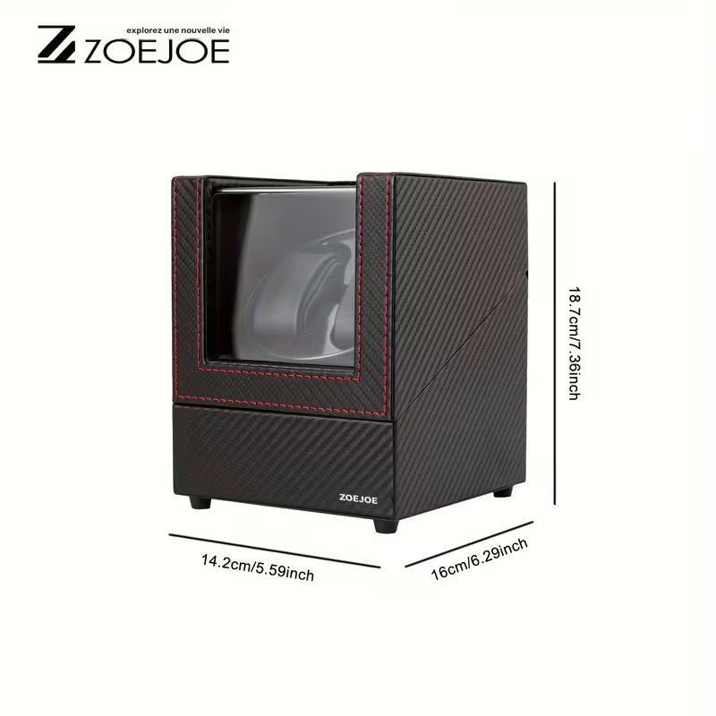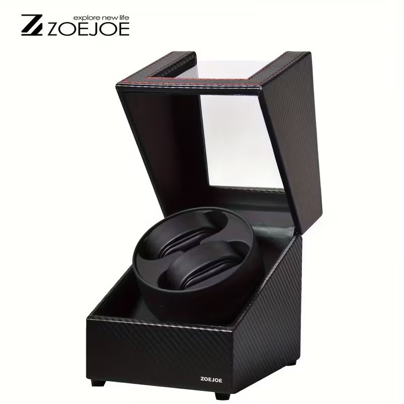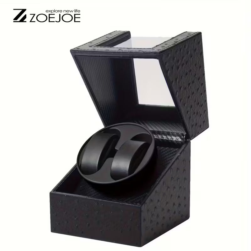 Son boîtier en bois, habillé d'un simili haut de gamme (carbone, cuir grainé, autruche, crocodile, noir, or, argent, etc.), accueille 2 emplacements montres sur coussinets souples, assurant un maintien parfait et une mise en valeur élégante .